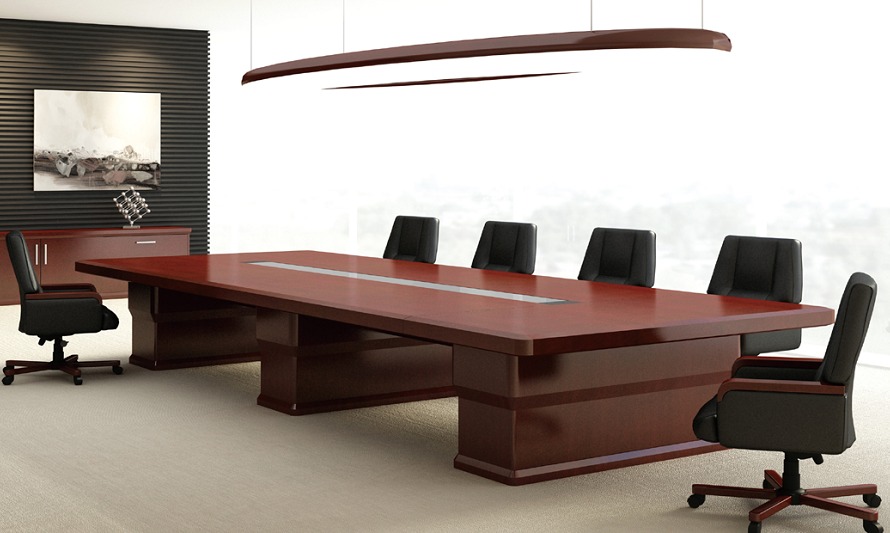 二、會議桌。會議桌一般用實木油漆,分為:普通小會議桌和大會議桌;會議桌按結構可分為:鋼框架結構和板式結構;會議桌按造型可分為長方形、橢圓形、馬腹式、圓形等異形風格。具體選擇要看辦公室大小和裝修風格。