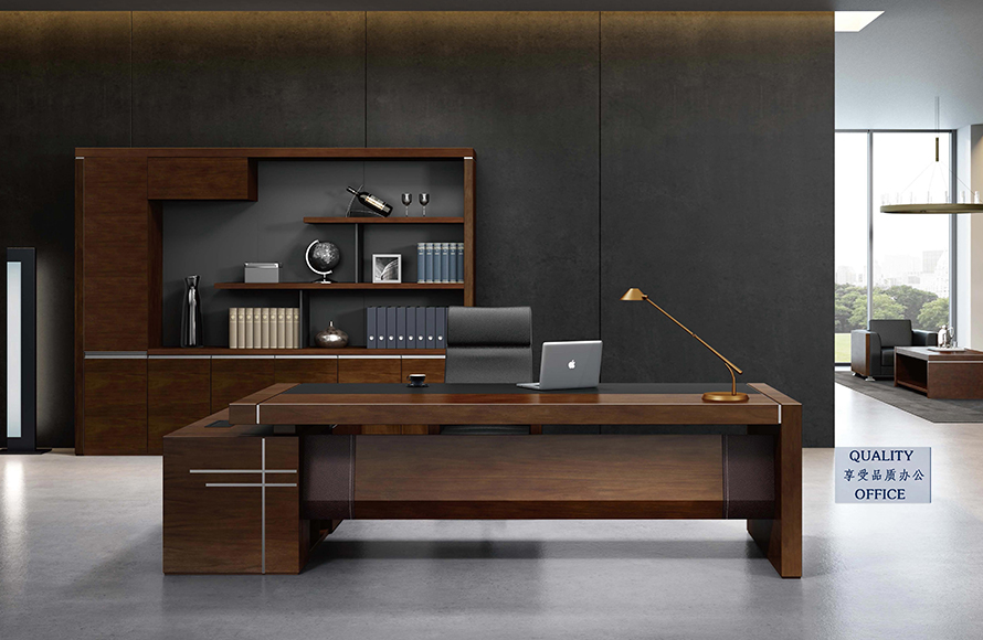 作為老板,辦公桌當然得有品味,這款老板辦公桌,光滑桌面光遠觀就質感十足,瞬間提升你辦公環境的檔次,大空間,滿足老板們的各種需求,電腦,文件夾資料,加寬副柜,銀拉絲金屬質感裝飾板,沉穩霸氣,這不是就是老板的風范嗎?絲滑亮面林肯胡桃木材質加上瑪卡淺灰色細麻面禪系班臺組合,整體搭配讓人眼前一亮,聞得到的清晰木香,無異味的環保材質,不管是每個細節,都精致到極限,沉穩大氣,絲滑無比,彰顯一種霸王風范!