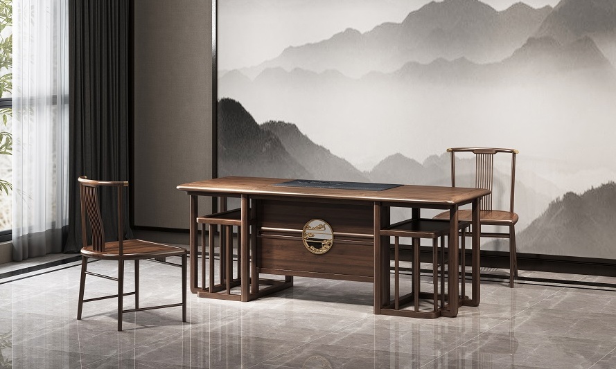 鴻熙系列新中式烏金木高管桌
