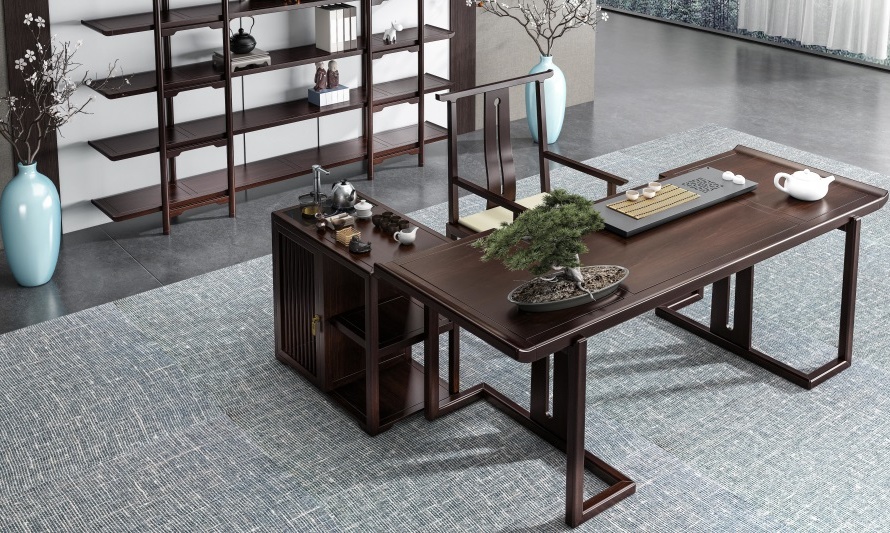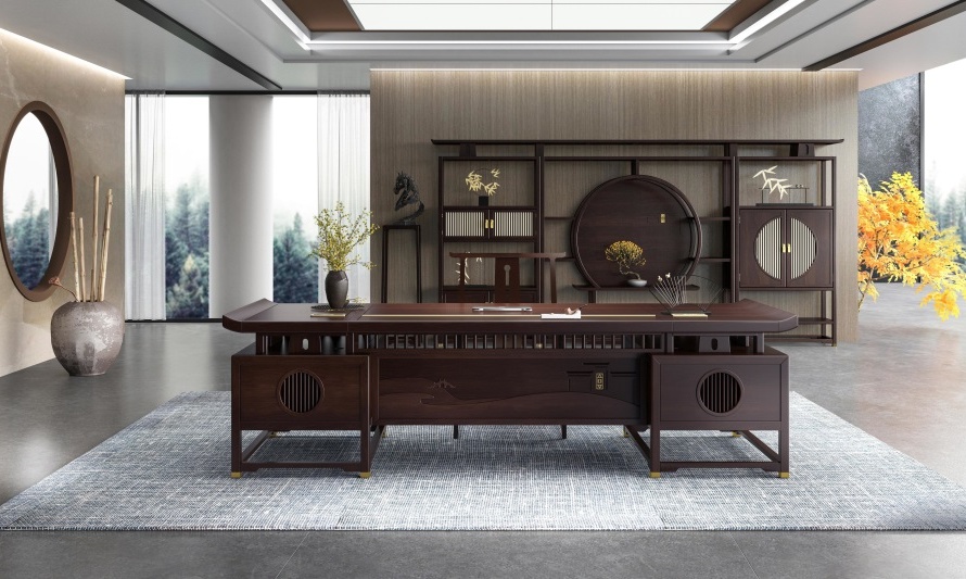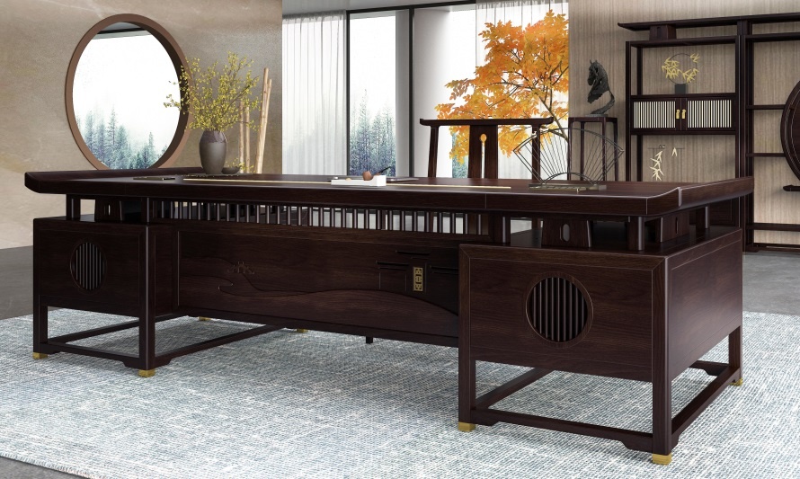 鴻熙系列新中式烏金木高管桌