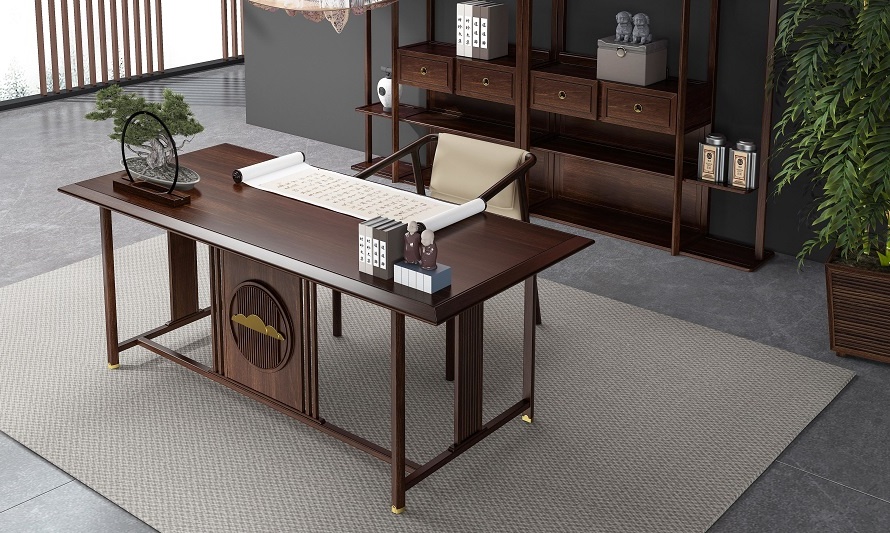鴻熙系列新中式烏金木高管桌